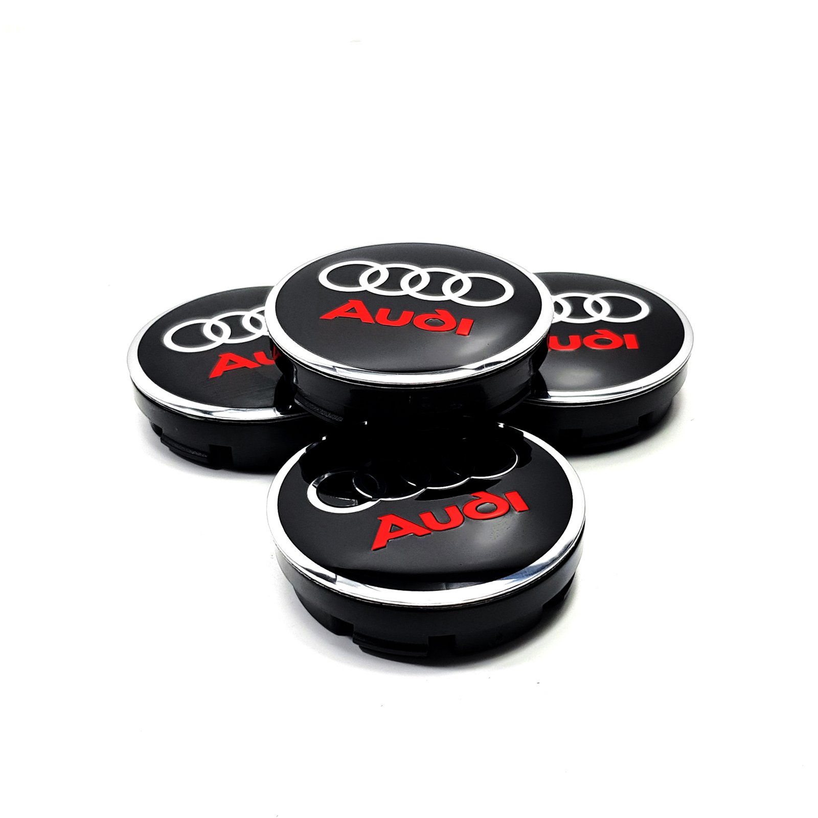 4 Cache moyeux Audi 56mm noir rouge centre roue