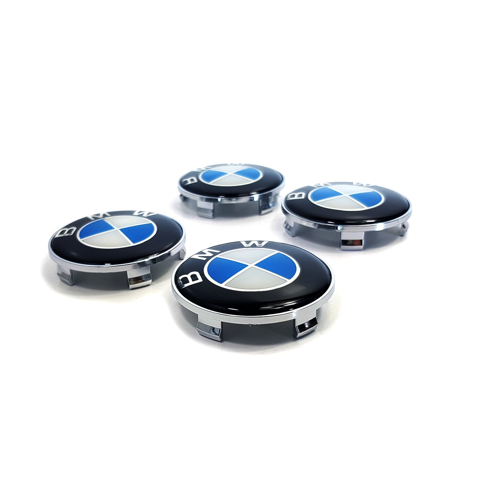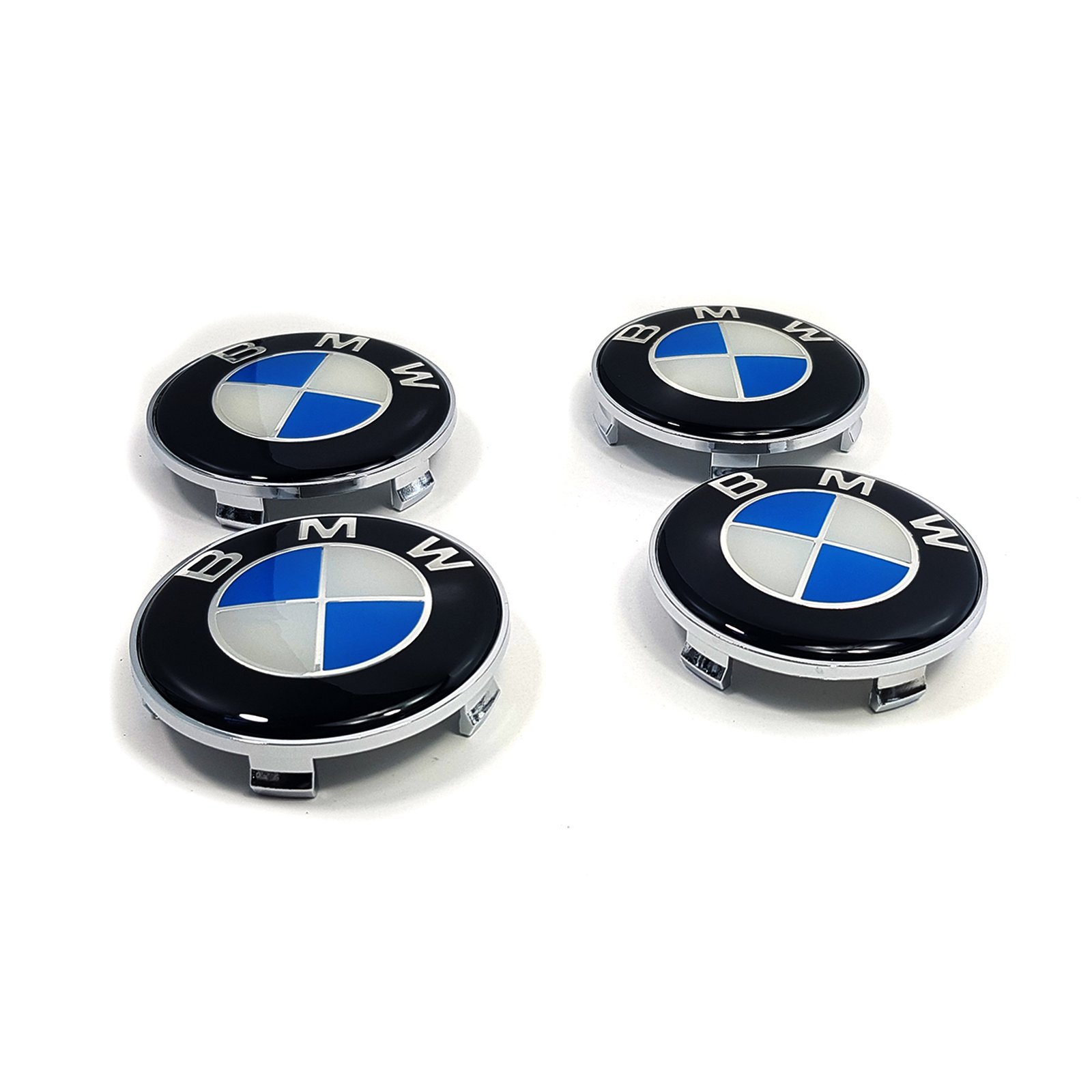 - Produit : Caches moyeux centre de roue BMW bleu & blanc 68 mm
