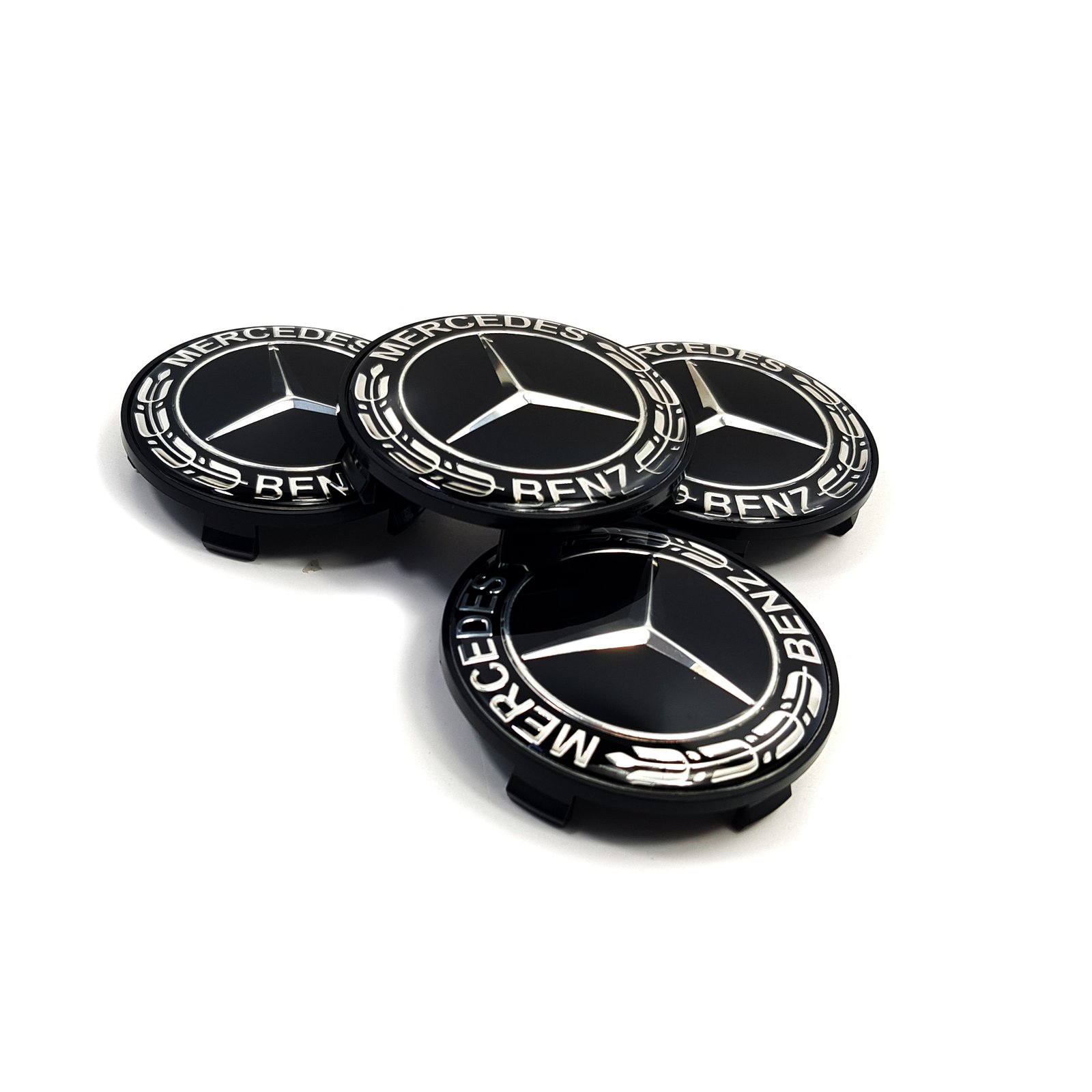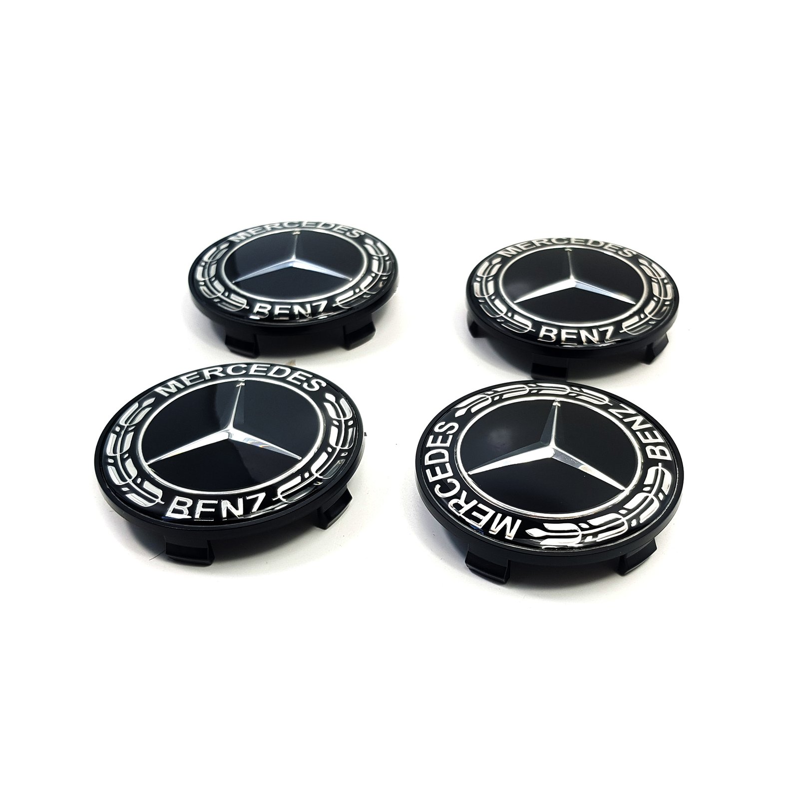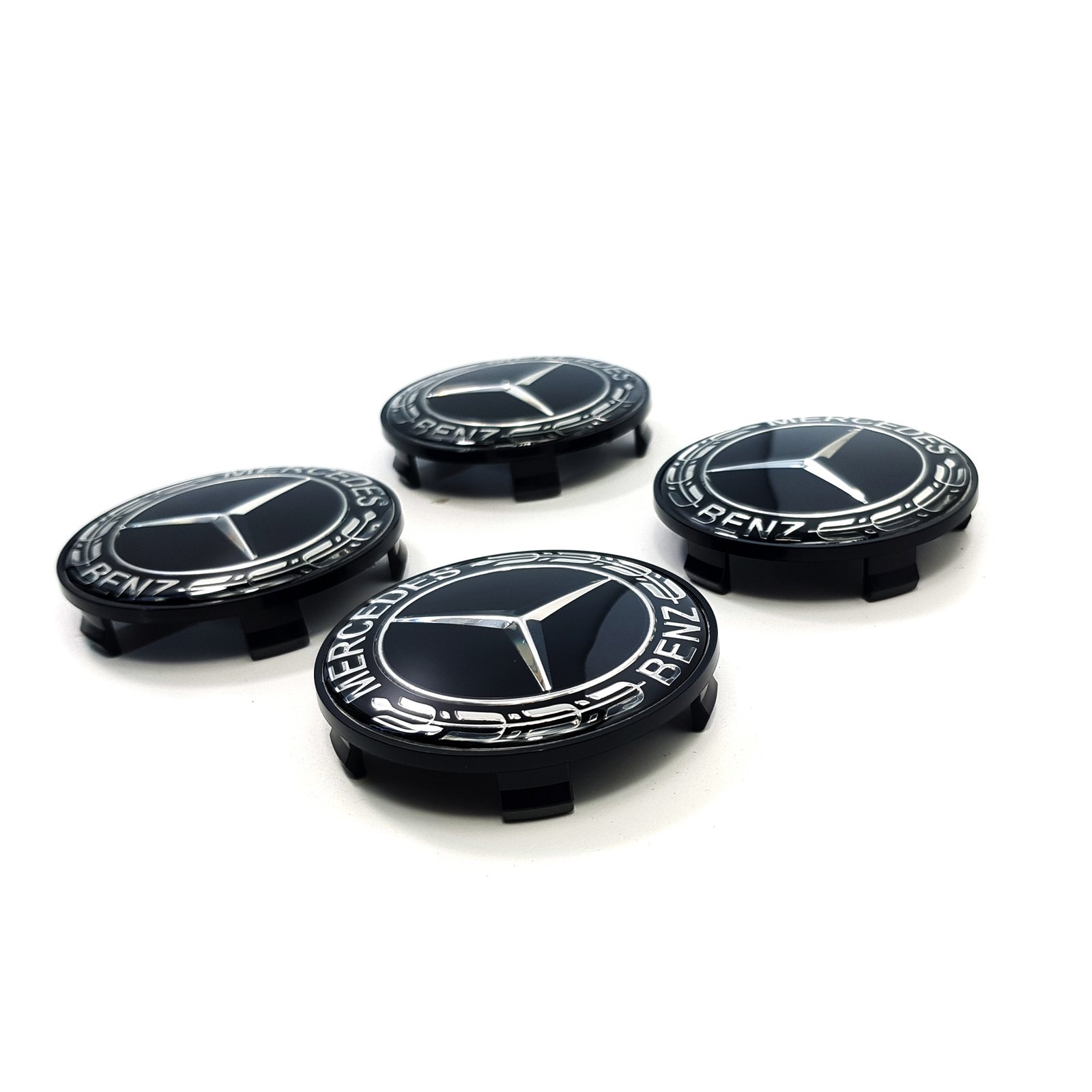 - Produit : 4 Caches moyeux Mercedes Benz centre roue Noir 68mm Noir