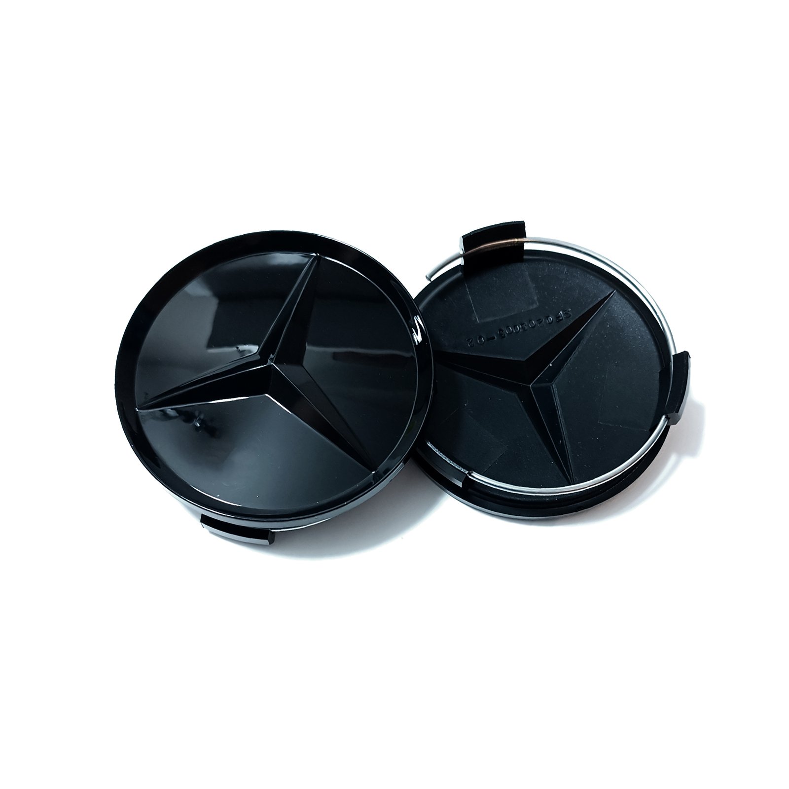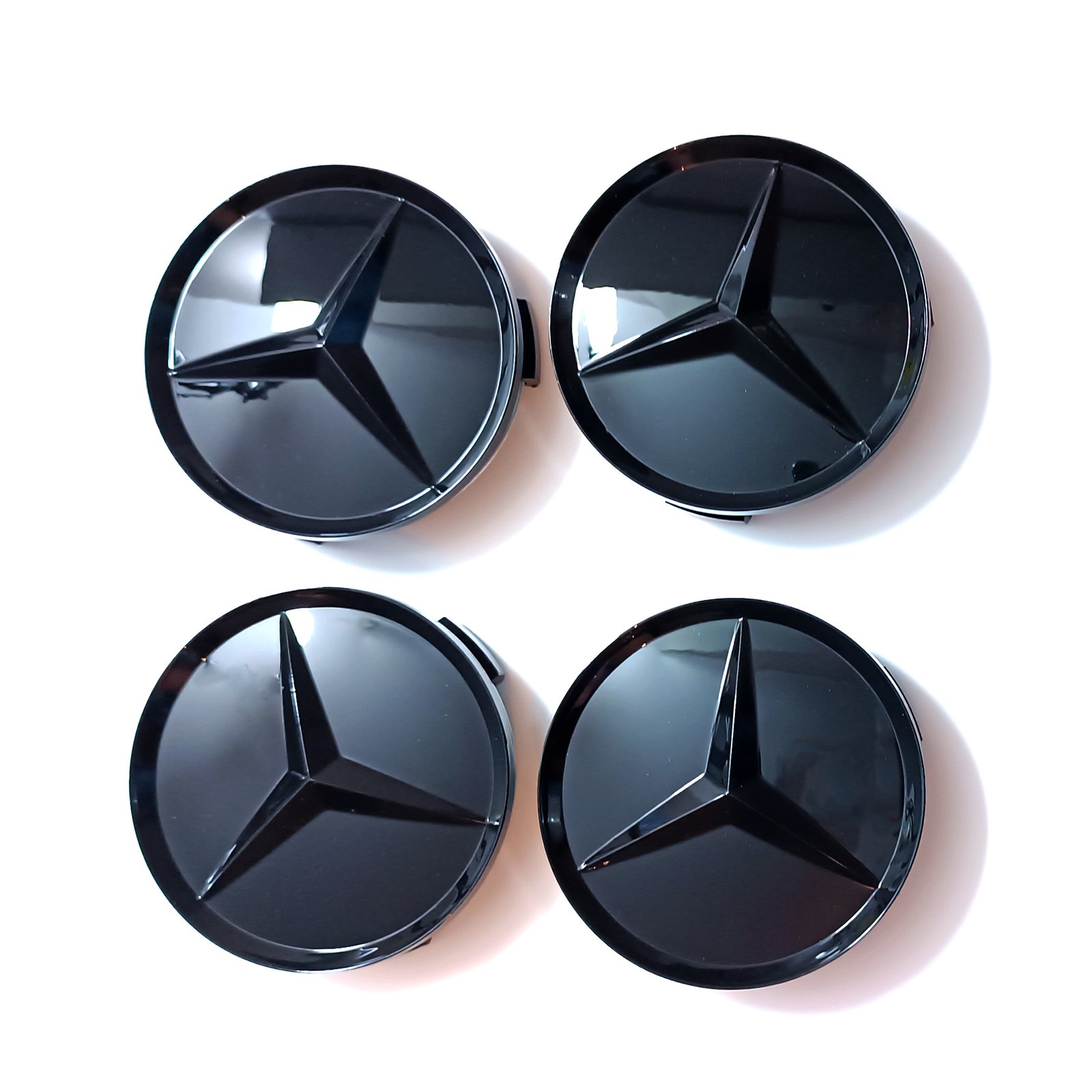 4 Caches Moyeux Mercedes Noir Brillant 75mm – Centre de Roue ABS