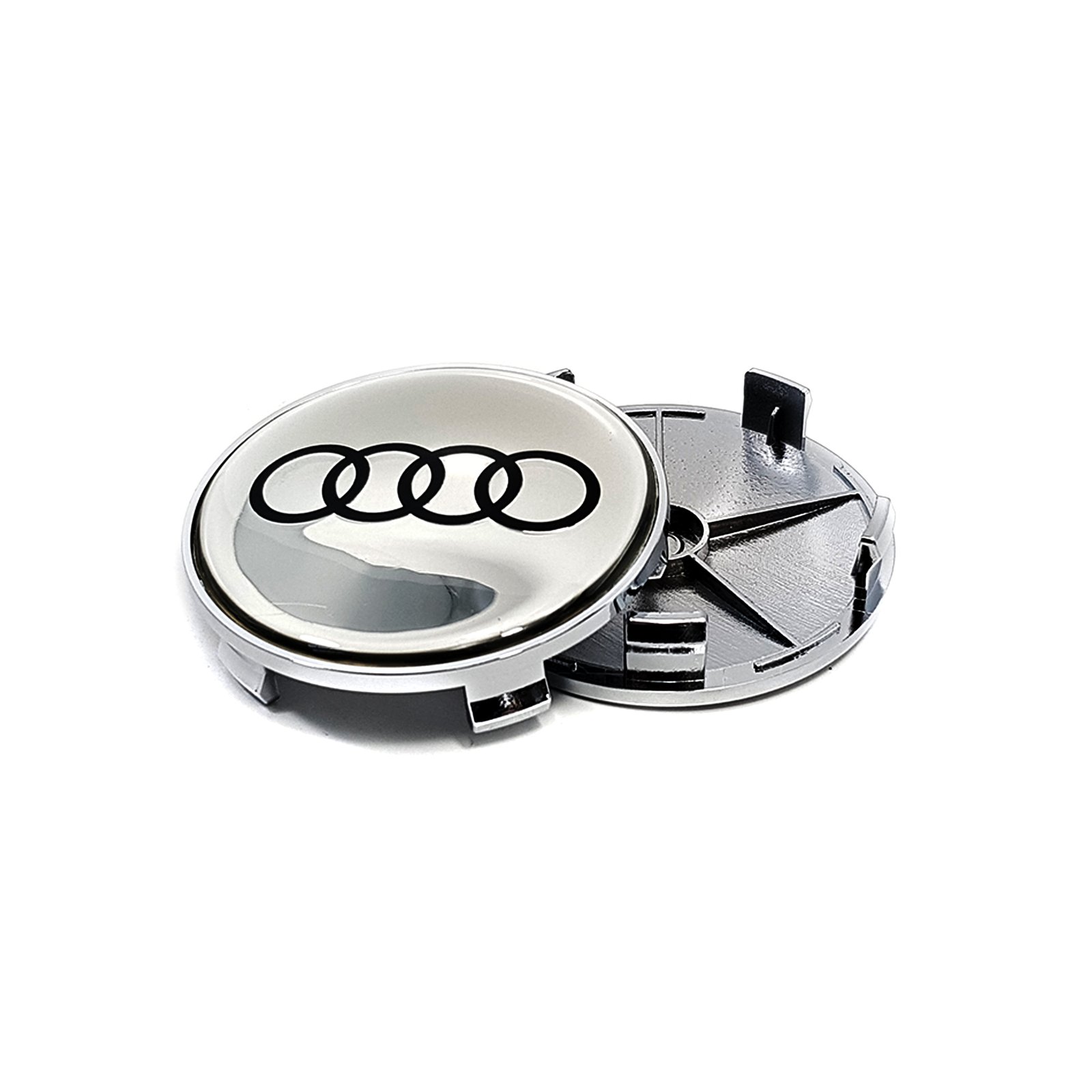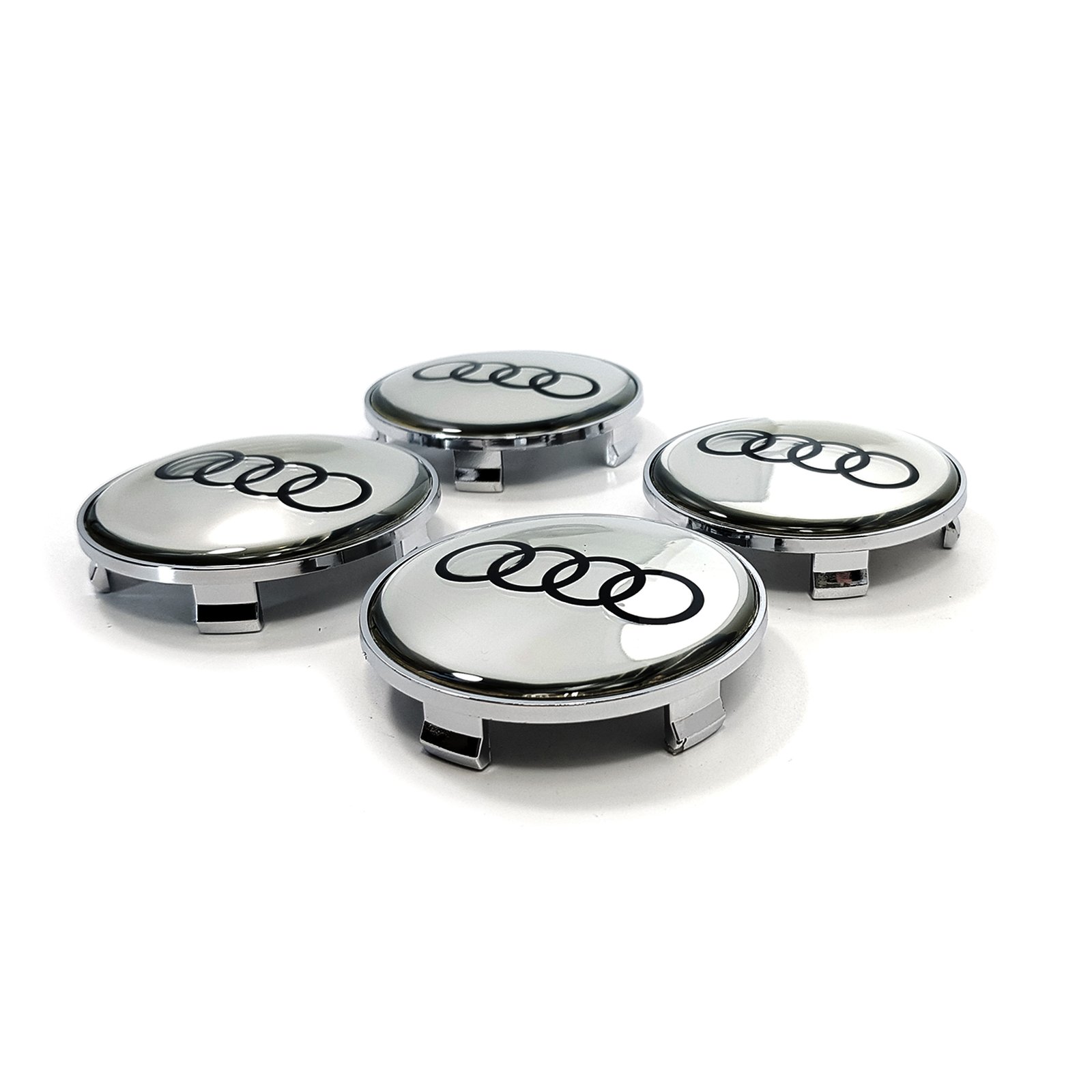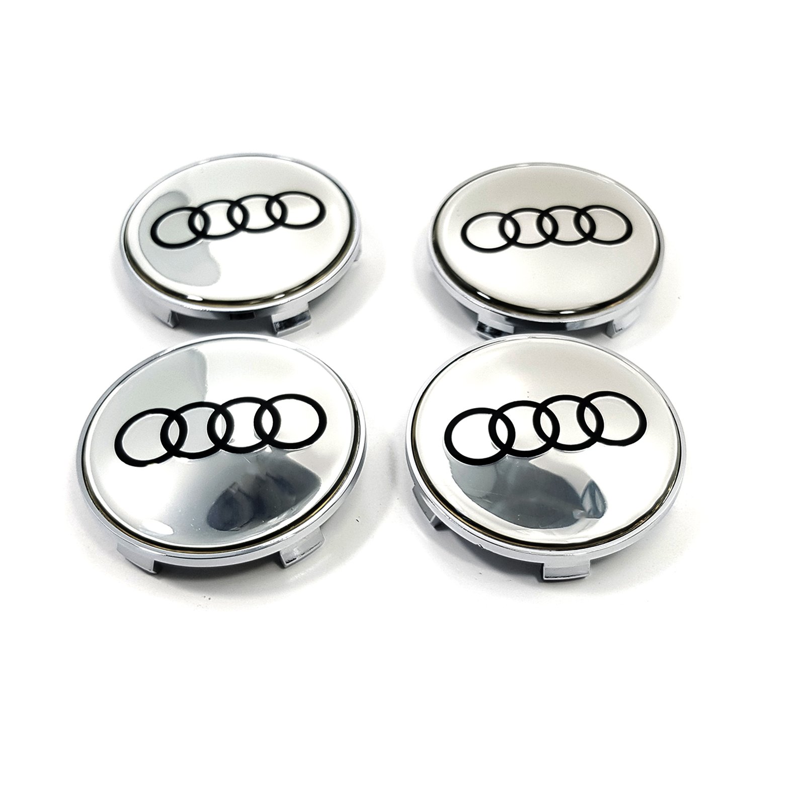 4 Cache moyeux Audi Silver Chrome 68mm en epoxy