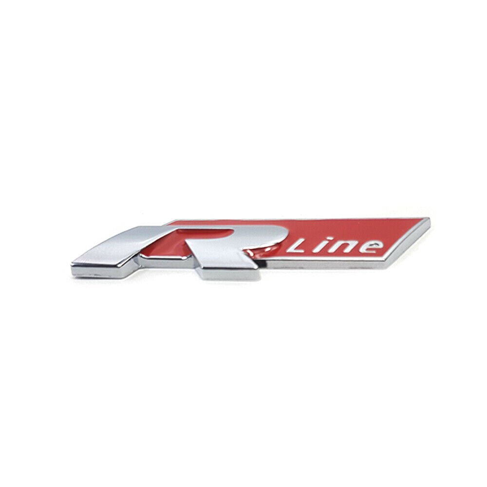 Emblème logo Rouge Chrome R line coffre arrière 75×23 mm pour Volkswagen Golf, Polo, Tiguan, Jetta, Bora, Scirocco mk7