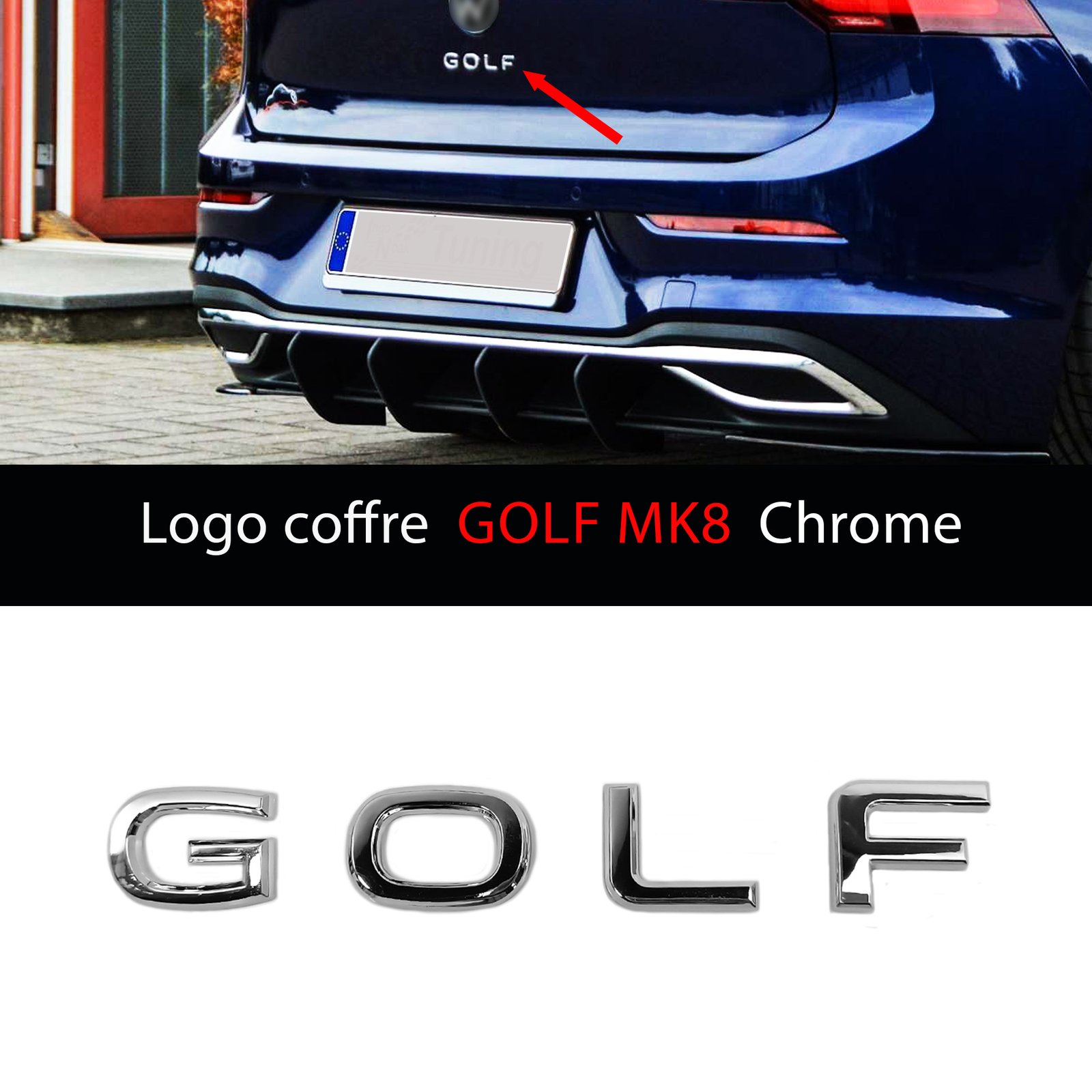 Emblème logo Golf Chrome vous donne un nouveau style à votre Volkswagen avec cet emblème Golf Chrome silver 150×20 mm, parfait pour le coffre arrière.