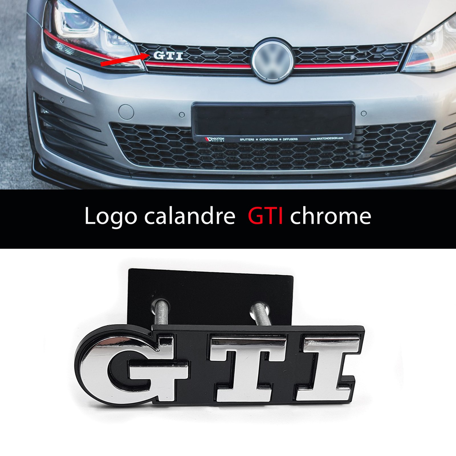 Emblème logo GTI Calandre golf chrome 90×26mm