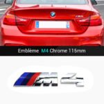 Améliorez le style du coffre arrière de votre BMW avec cet emblème M4 Chrome silver, format 115×28 mm.