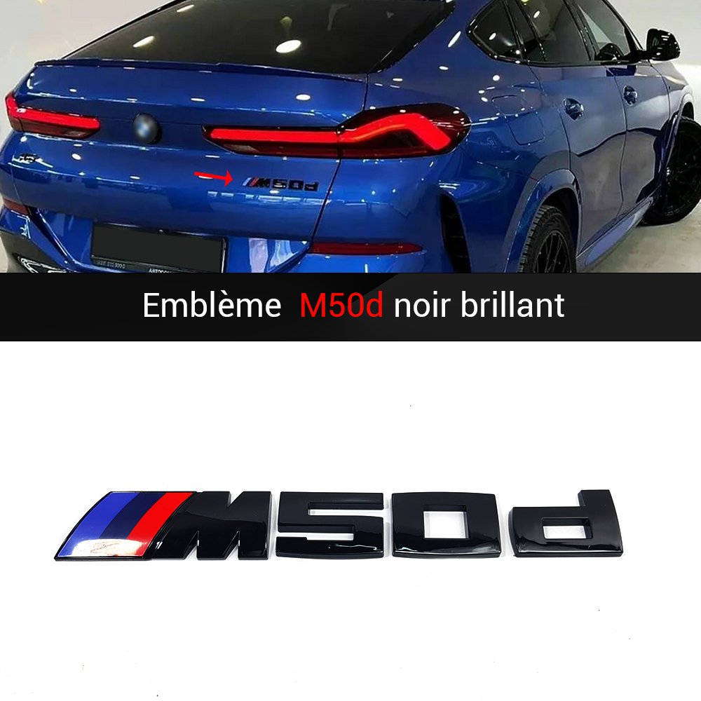 Emblème M50d Noir Brillant 195×25 mm – Coffre Arrière BMW