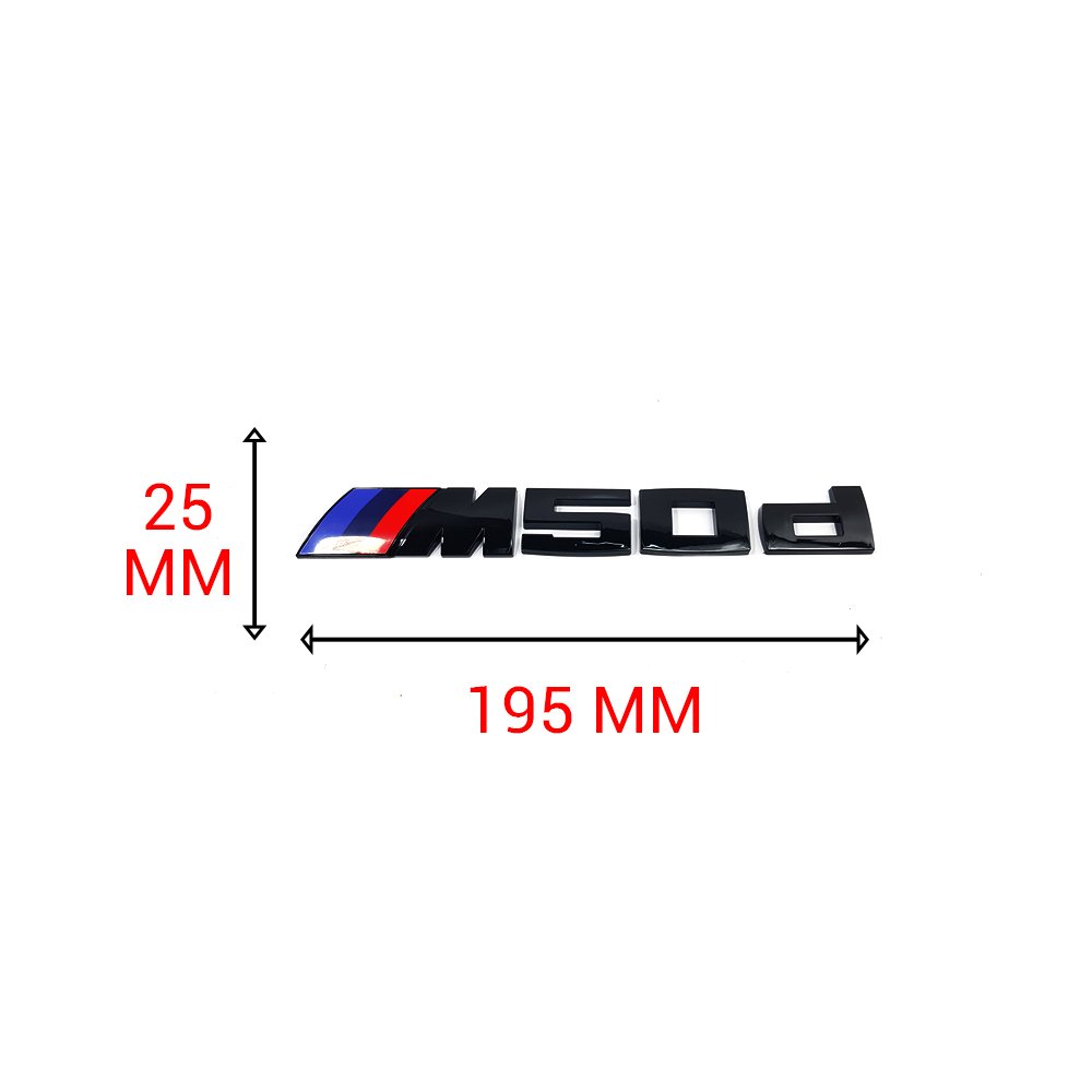 Emblème M50d Noir Brillant 195×25 mm – Logo ABS Pour Coffre Arrière BMW