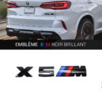 Améliorez le style du coffre arrière de votre BMW avec cet emblème X5M noir brillant, format 165×26 mm.